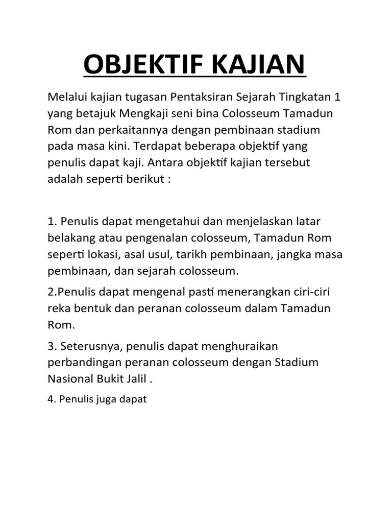 Objektif Kajian Folio Sejarah Tingkatan 1 / Folio Sejarah Tingkatan 2
